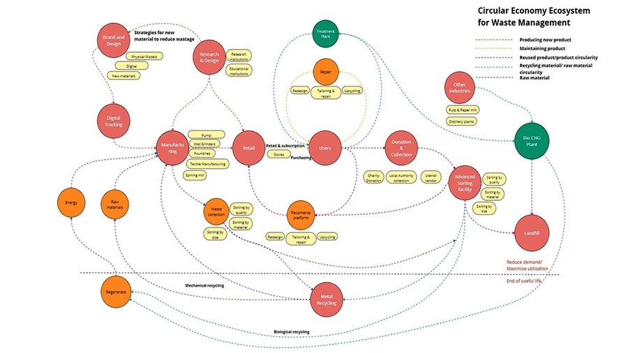 SMEs form the backbone of India’s economy, but are often neglected in climate discourse. Through a blend of stakeholder interviews, policy analysis and spatial data, I mapped material flows and proposed interventions such as waste-to-resource strategies, common effluent treatment plants and decentralized renewable energy.